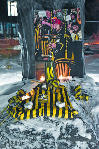 HOUGHTON — The Huskies Pep Band mourned one of its members with a candlelight vigil at the Husky statue Wednesday night.