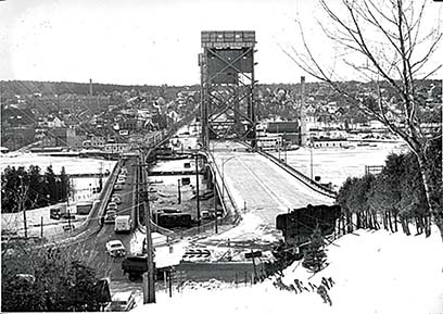It replaced a swing bridge built in 1895, which was rebuilt 11 years later after a collision with the steamer Northern Wave. The old bridge’s inadequacies had become more obvious with time. In warm weather, local fire departments would be called out to hose down the approaches, which would expand with heat. In cold, ice would clog gears and the turning mechanisms, the Gazette reported.