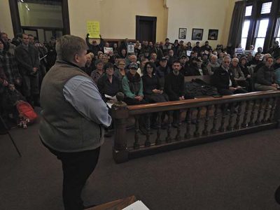Koskela surveyed the crowd to gauge their reaction. Thirty-nine people in the crowd were opposed to the resolution. He did not get a firm count of the people in support, but noted they made up a clear majority.