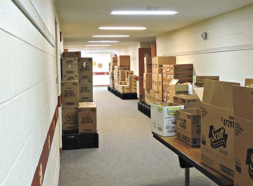 Graham Jaehnig/Daily Mining Gazette The Food Distribution Program, conducted jointly between the districts of Hancock Public Schools and the Houghton-Portage Township Area Schools, has been extended to June 30, and boxes of breakfast items wait to be parceled out for weekly food distribution for students who are continuing the the final period of the 2019-20 school year.