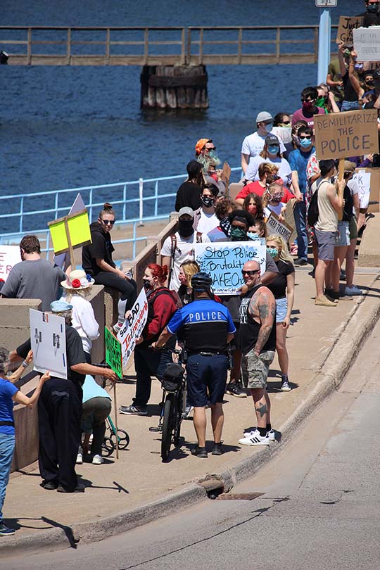 HOUGHTON — As marchers filled both sides of the Portage Lake Lift Bridge and shouts of “Black Lives Matter” resounded, James Collins lifted his phone in the air to document the scene for friends downstate.