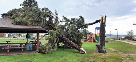 - Richard Vissers/For the Gazette In a photo provided by Phil Vissers, a large chunk of a tree lies on the ground at the L’Anse Waterfront Park after a series of thunderstorms swept through the area Saturday night.