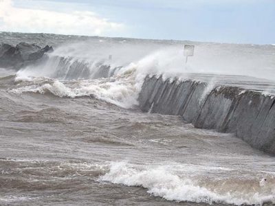 - Garrett Neese/Daily Mining Gazette Waves crash onto the shore near McLain State Park as high winds blew through the Copper Country Thursday.