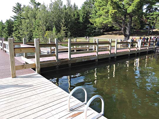 Graham Jaehnig/Daily Mining Gazette Hancock’s new recreation pier offers far more than the previous dock, with a platform from which people can jump into the water, and a spot for mooring of larger motorized craft. The new pier also features an independent structure for launching kayaks and canoes, and is full accessible to wheelchair reliant paddlers.