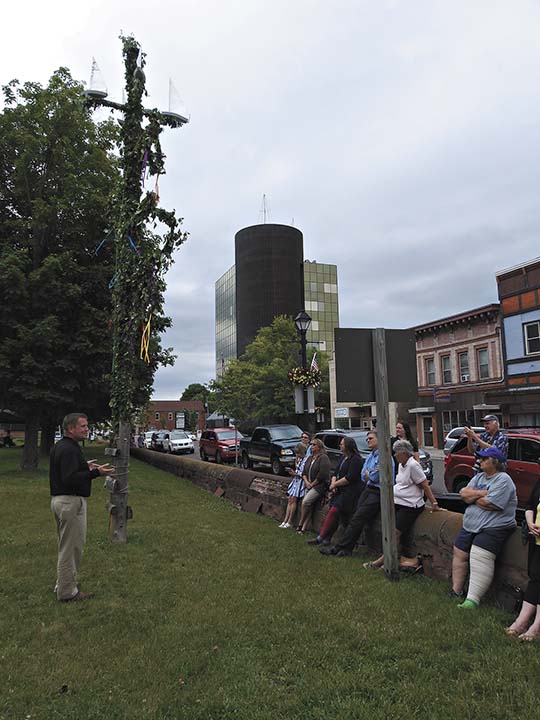 David Maki, interim director of the Finnish American Heritage Center, welcomes a crowd to Finlandia University’s seventh annual Juhannus celebration Thursday. The university first held the midsummer celebration in response to the popularity of the 2013 FinnFest, which was held in Hancock. Many seaside communities would put them up in lieu of a bonfire, Maki said. The Juhannus pole is an estimated 20 feet high, and took seven people to lift it into place. It will stay up as long as weather permits, Maki said. Other Juhannus events, such as a bonfire, were canceled this year. “If you’ve taken a year off from running, you don’t run a full marathon your first time out of the gate,” Maki said. The event was an informal kickoff for what Maki hopes will be many more at the FAHC as the academic year begins.