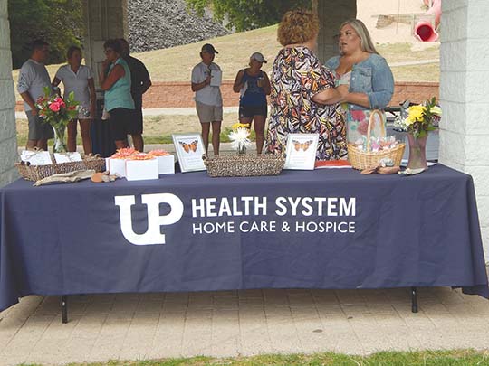 - Chris Jaehnig/Daily Mining Gazette The UP Health System Home Care and Hospice table was decorated with flowers, packets, and butterflies for the inaugural Butterfly Release and Remember event.