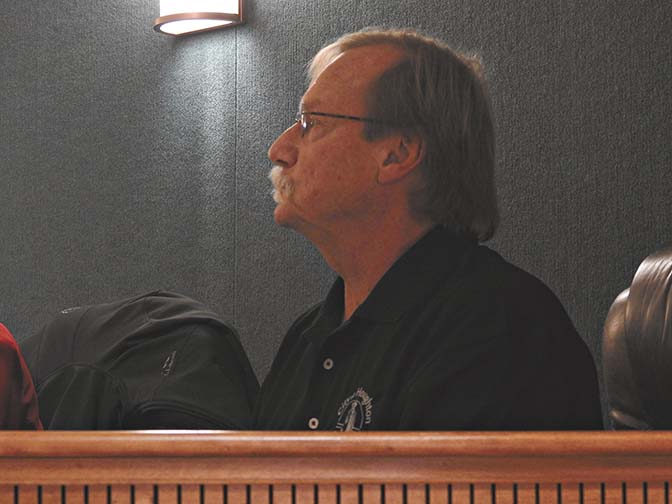 Garrett Neese/Daily Mining Gazette Houghton City Councilor Dan Salo listens to his resignation letter being read during Wednesday’s meeting. Salo, who has been on the council for 10 years, left because he will be living out of the area during the winter.