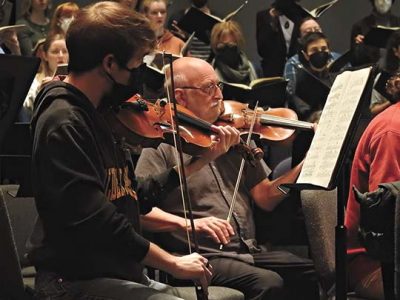 The orchestra is a “college-community hybrid,” Neves said: about half are Tech students, while the other half are Tech faculty, community members and music educators.