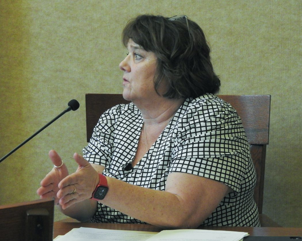 Hancock City Manager Mary Babcock talks during Wednesday’s city council meeting. The council voted to table the introduction of the city’s zoning ordinance until its June 15 meeting to allow for a council work session on revisions. (Garrett Neese/Daily Mining Gazette)