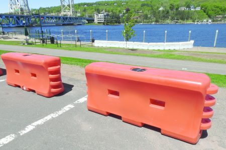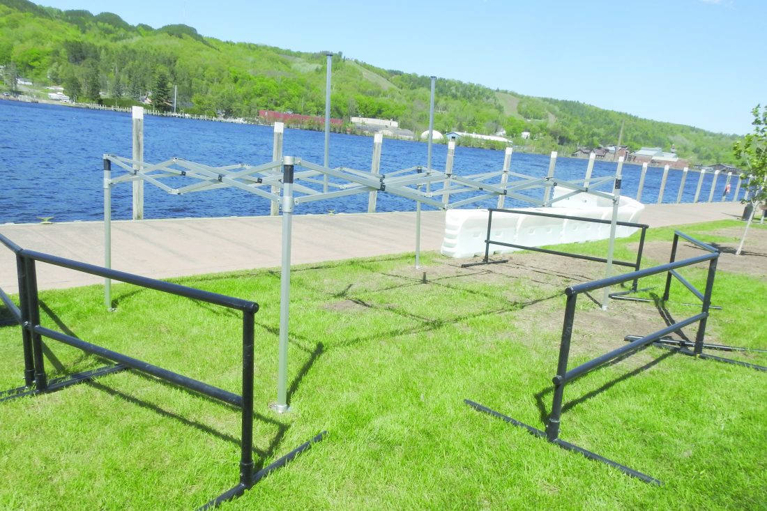 The Houghton Police Department was supervising security at Bridgeview Park in consultation with the U.S. Coast Guard. The security barriers were being left up Tuesday so the Coast Guard could inspect them, said Houghton Police Chief John Donnelly.