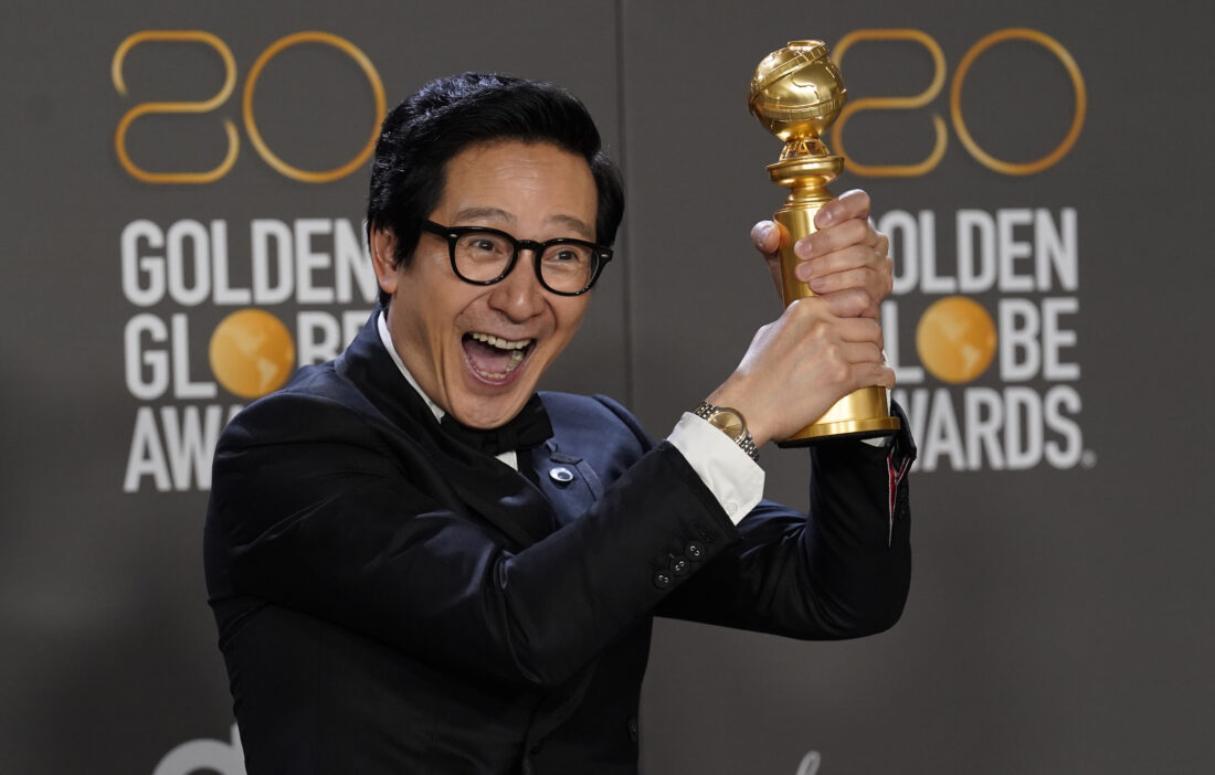 - Ke Huy Quan poses in the press room with the award for best performance by an actor in a supporting role in any motion picture for “Everything Everywhere All at Once” at the 80th annual Golden Globe Awards at the Beverly Hilton Hotel on Tuesday, Jan. 10, 2023, in Beverly Hills, Calif. (Photo by Chris Pizzello/Invision/AP)