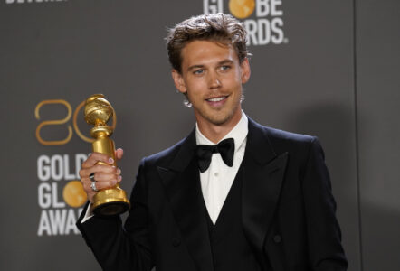 - Austin Butler poses in the press room with the award for best performance by an actor in a motion picture, drama for “Elvis” at the 80th annual Golden Globe Awards at the Beverly Hilton Hotel on Tuesday, Jan. 10, 2023, in Beverly Hills, Calif. (Photo by Chris Pizzello/Invision/AP)
