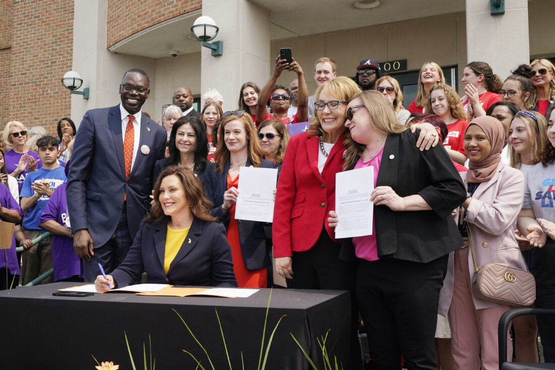 Whitmer signed the legislation just outside of Detroit, flanked by state lawmakers and individuals affected by gun violence. Former Arizona Congresswoman Gabby Giffords, who began campaigning for gun safety after she was shot in the head in 2011, was also in attendance.