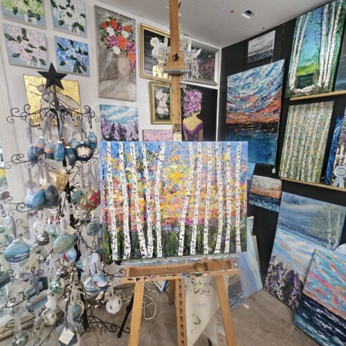 Art is a true passion for Shirey. Her favorite painting medium is using a palette knife; however, she does occasionally use brushes, too. Shirey opts for the palette knife because she loves to layer her paint and texture. This technique gives her paintings a signature look.