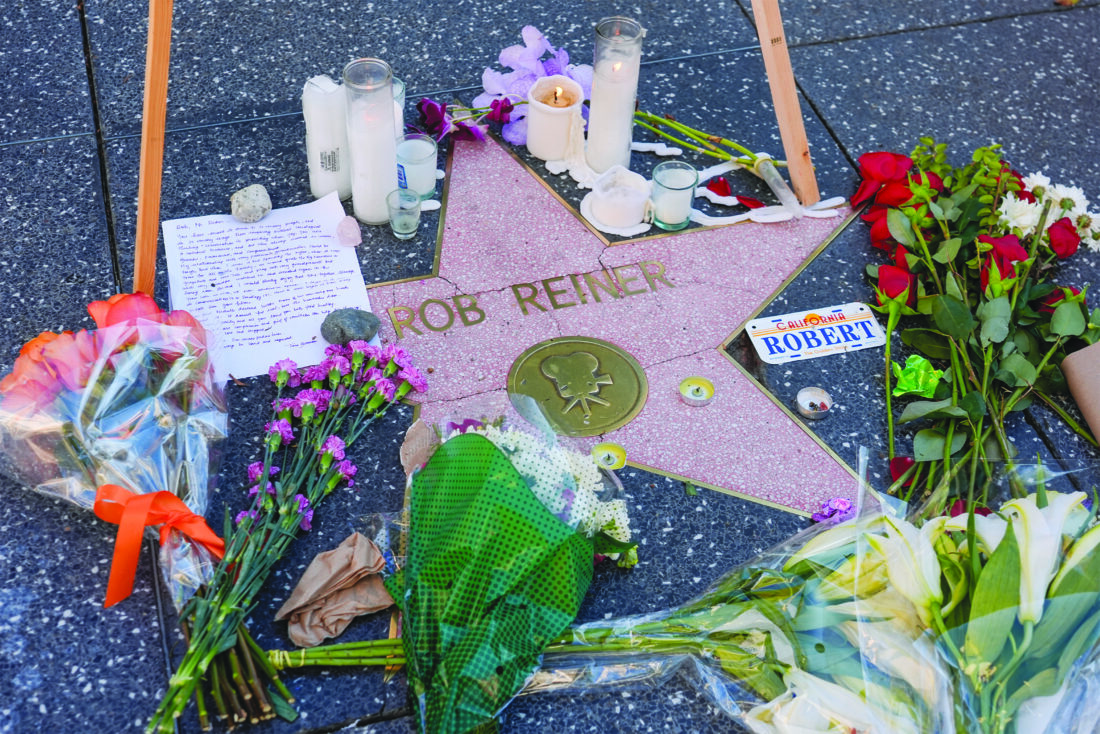 (AP Photo/Damian Dovarganes) Flowers cover the Walk of Fame star for Rob Reiner Monday, in the Hollywood section of Los Angeles.