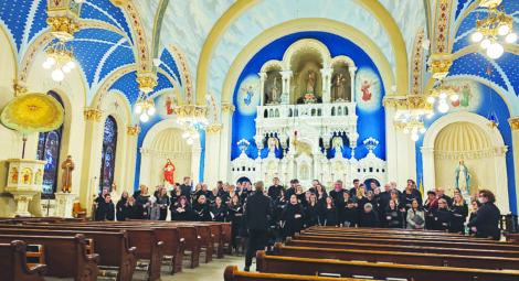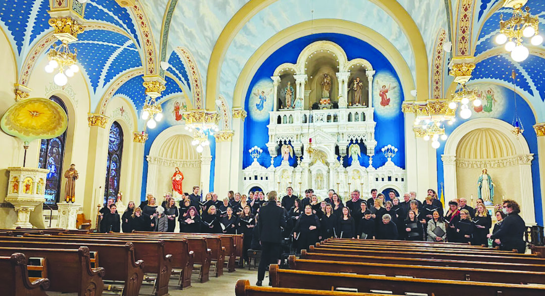 Photo courtesy of Michigan Technological University The combined choirs of Michigan Tech rehearse prior to a 2024 performance at St. Joseph's Church in Lake Linden. The choirs will perform Saturday at the church.