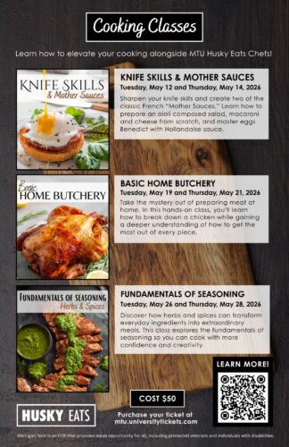 HOUGHTON — Michigan Technological University Dining Services announced a new series of Community Cooking Classes offered in May at The Eatery in McNair Hall. Designed for home cooks of all skill levels, these immersive, hands-on classes provide an opportunity to sharpen essential techniques, ...