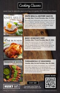 HOUGHTON — Michigan Technological University Dining Services announced a new series of Community Cooking Classes offered in May at The Eatery in McNair Hall. Designed for home cooks of all skill levels, these immersive, hands-on classes provide an opportunity to sharpen essential techniques, expand culinary knowledge, and learn directly from MTU Husky Eats Executive Chef Erik Copeland and Sous Chef Ron Edwards.