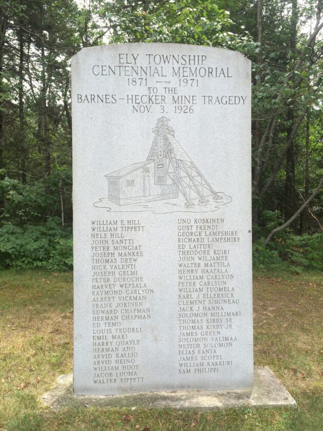 Photo from Facebook A headstone in the Ishpeming Cemetery commemorates the 51 men who lost their lives in the November 3, 1926 Barnes-Hecker Mine disaster