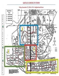 City of Hancock A map of Hancock with approximate times for Santa’s appearance.