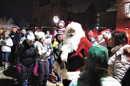- Joshua Vissers/Daily Mining Gazette Santa Claus at 2019’s tree lighting in Hancock. This year, due to COVID-19 restrictions, Santa will instead tour the city on top of a fire truck.