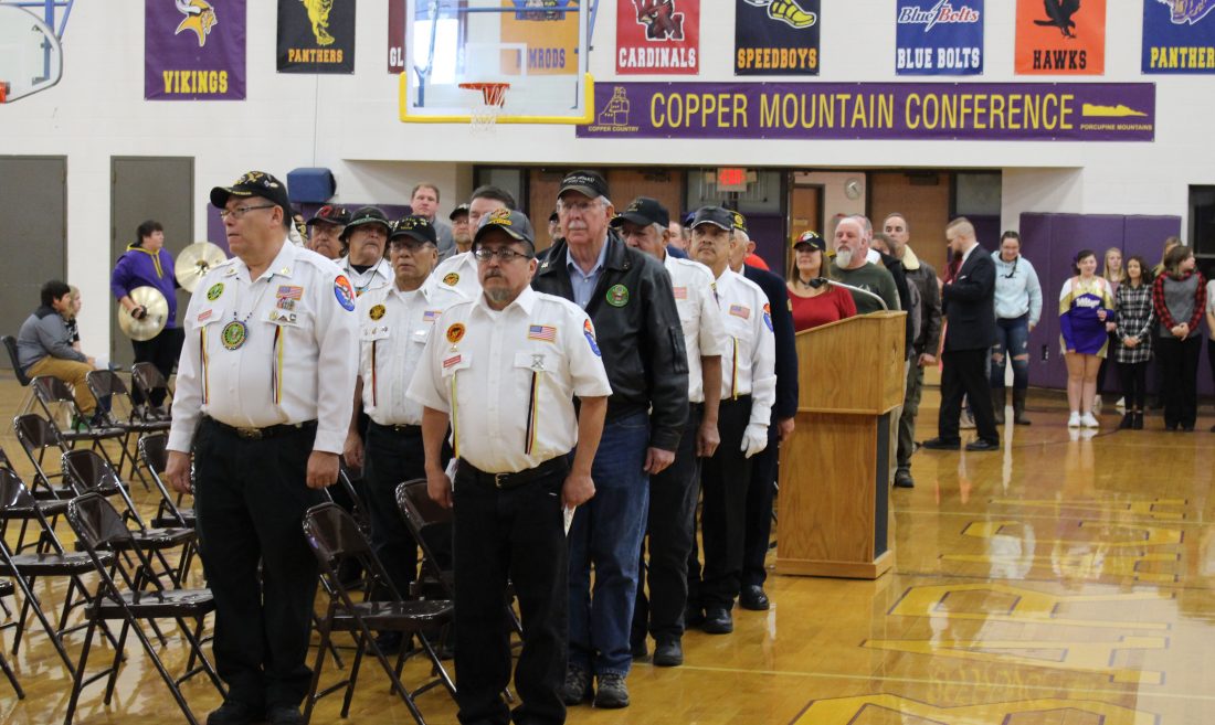 Gazette file photo Local veterans participated in a Veterans Day program at Baraga High School in this Gazette file photo. There are Veteran's Day programs at several local schools tomorrow.