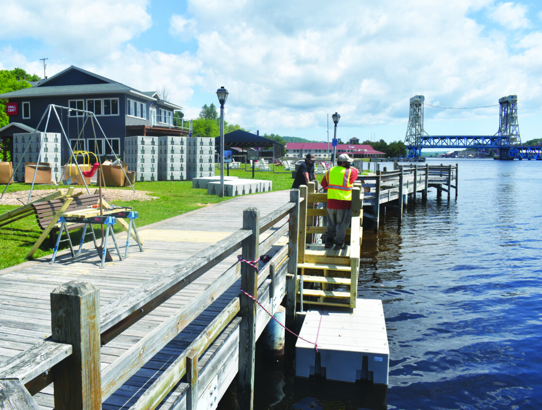 Ben Garbacz/Daily Mining Gazette Hancock Public Works has begun constructing the dock on the waterfront at Porvoo Park. Porvoo Park has underwent changes in the past couple of months, and the City of Hancock Recreation Commission discussed the possibility of including a splash pad to the park.