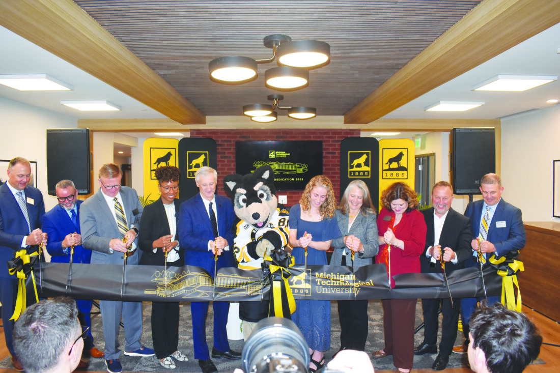 HOUGHTON — Michigan Tech held a ceremonial opening of East Hall with a ribbon cutting Friday. The new hall allows 500 upper class students a place to live. The building features collaborative study rooms, fitness spaces, a game room, lounge areas and kitchenettes. The spaces were the result of input from students sharing what they wanted to see in their living space according to Vice President for Student Affairs Laura Bulleit.
