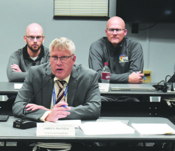 Ben Garbacz/Daily Mining Gazette CCISD Superintendent James Rautiola reported to the CCISD Board of Education that Lake Linden-Hubbell Schools has brought on Emily Geiger as the school's interim superintendent. Rautiola served as the school's interim superintendent for 18 days before hiring Geiger.