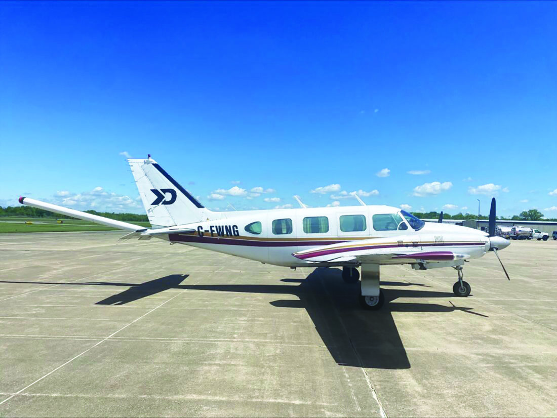 Fixed-wing survey aircraft with tail stingers and sensors collect scientific data on geology. (Photo courtesy of the U.S. Geological Survey)