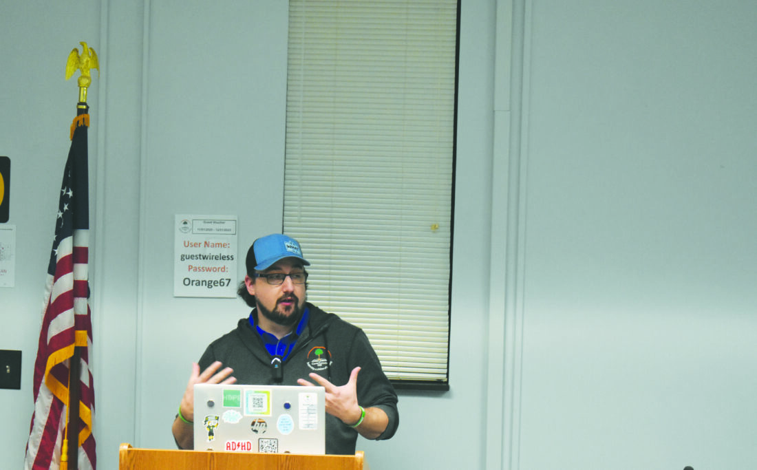 Ben Garbacz/Daily Mining Gazette Andy Kalcich gave a presentation on the Green Bandana Project to the CCISD Board of Education and staff during the board meeting on Tuesday. The project is meant to address mental health concerns and needs within schools.