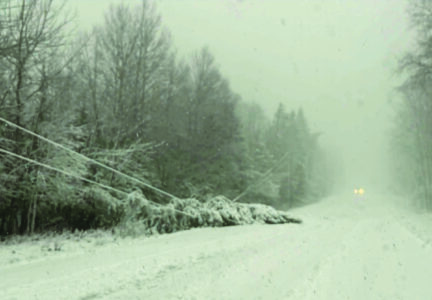 Paula Porter, for the Gazette Severe winter weather visited the Copper Country lates Tuesday night and continued into Thanksgiving Day. The wet, heavy snow coupled with high brought down power lines causing loss of electricity to thousands throughout Houghton Ontonagon, Keweenaw and Baraga Counties. This picture was taken Wednesday morning, on M-203 near the intersection of Lakeshore Drive in Houghton County