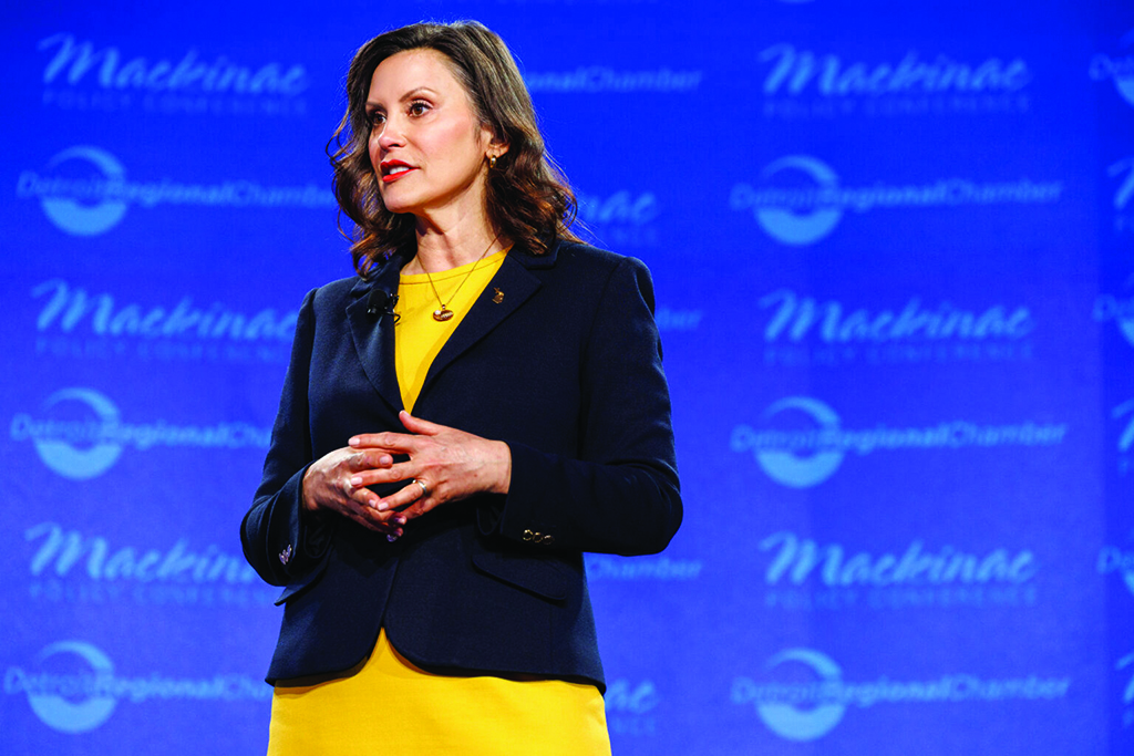 Michigan Advance photo Gov. Gretchen Whitmer speaks during the second day of the Mackinac Policy Conference at the Grand Hotel on Mackinac Island, Mich., on May 28, 2025.