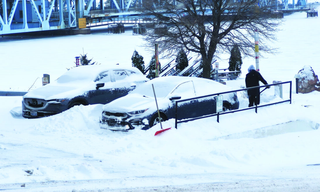 Graham Jaehnig/Daily Mining Gazette While heavy snow began to taper off early Monday morning, Sunday night’s blizzard left motorists across the Upper Peninsula digging out of parking spaces and driveways.