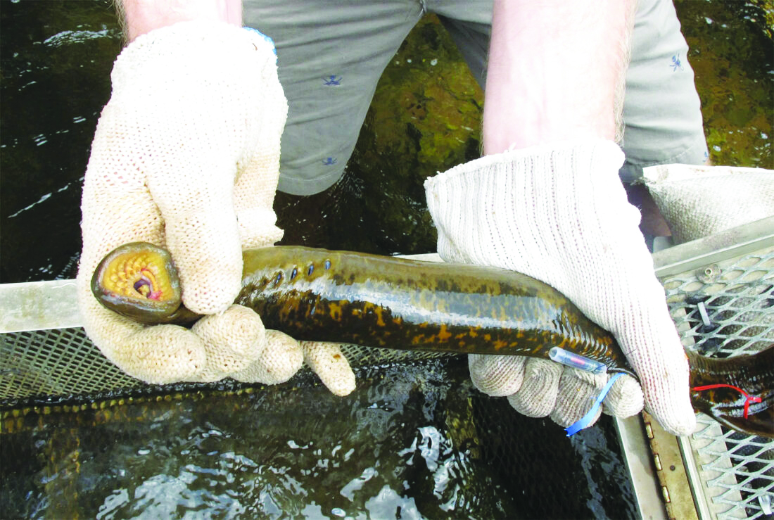 Sea lamprey are an invasive species native to the Atlantic Ocean that feed on the blood and bodily fluids of fish. According to McClinchey, the problem is every sea lamprey can eat up to 40 pounds of fish, while every female can have around 100,000 eggs.