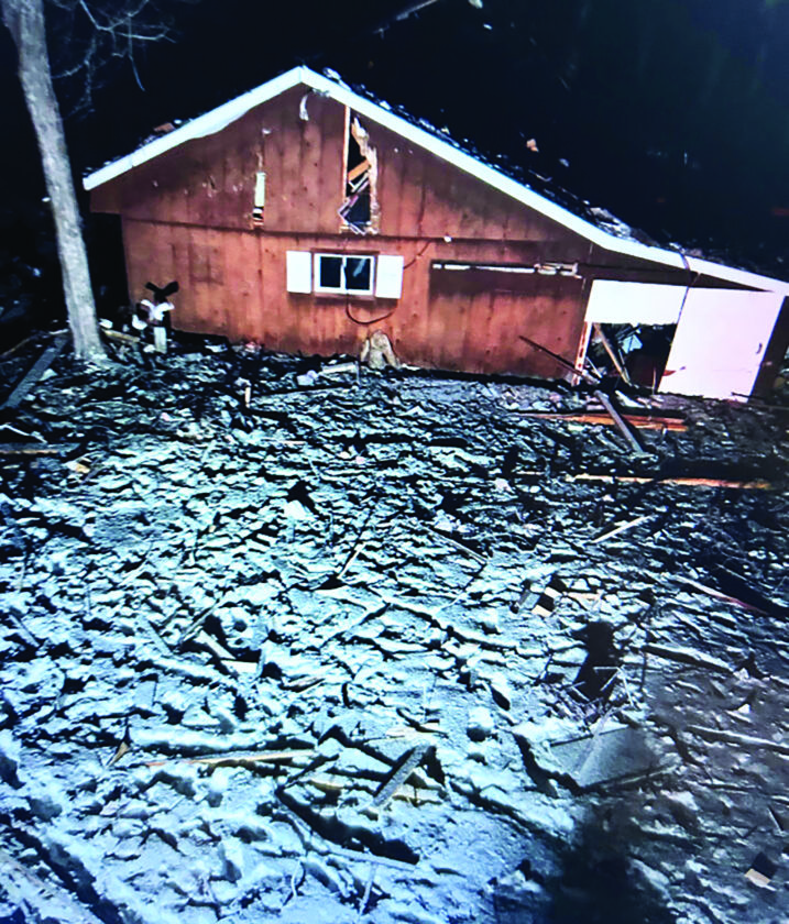 Provided photo Law enforcement responded to the Garden area for a house explosion Monday night. Garden Township Fire Department drone footage shows the extent of the damage from the explosion, resulting in a total loss of the residence.