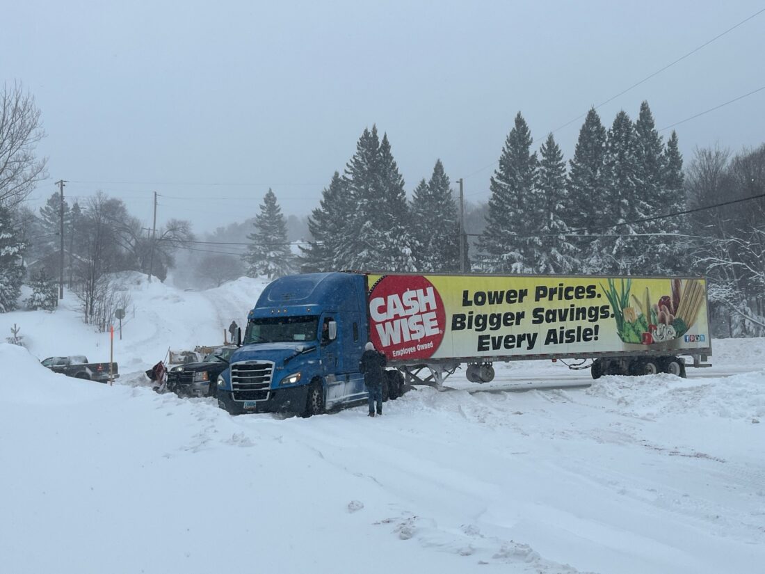 Paula Porter/For the Gazette This semi slid off the roadway on M-26 Wednesday afternoon. Local law enforcement reported a large number of vehicles stuck or on the side of streets and roads because of the winter storm.