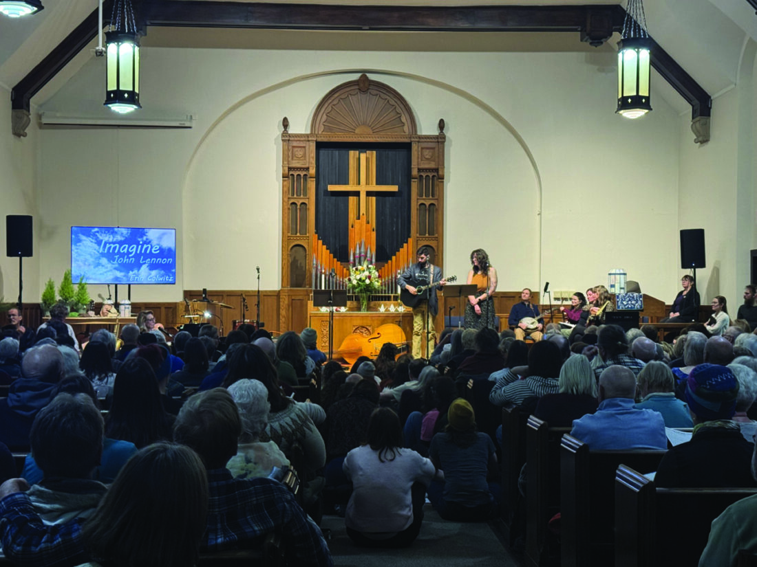 Annie Lippart/Mining Journal photo Brian and Molly Wallen perform “Imagine” by John Lennon, accompanied by Dr. Erin Colwitz, at Thursday’s Musical Vigil for Hope and Peace, held at the Marquette Hope Methodist Church.