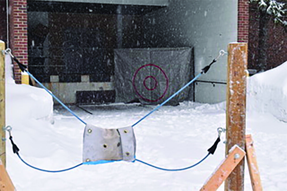 The objective of the slingshot is to launch snowballs in an attempt to hit a target. Participating students can win prizes by doing hitting the bullseye.
