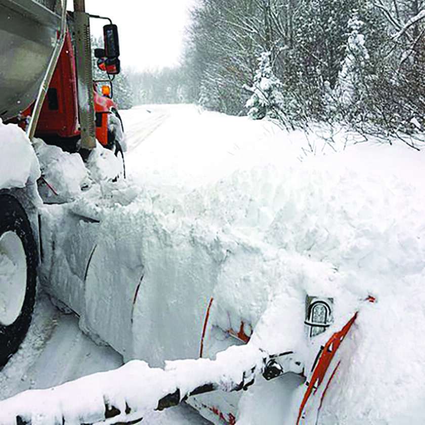 Photo courtesy of Houghton County Road Commission. A road commission plow is shown clearing a Houghton County road. The commission is facing a double whammy as this winter's heavy snowfall is causing more equipment repairs, amidst a funding shortage.