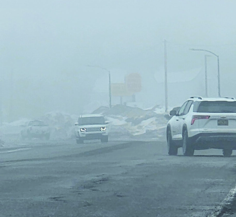 Paula Porter/for the Gazette The words of Carl Sandburg came to mind Thursday morning as what was described as "freezing fog" blanketed the area. The ice settled on roads making driving conditions difficult and delaying the start of most area schools by two hours.