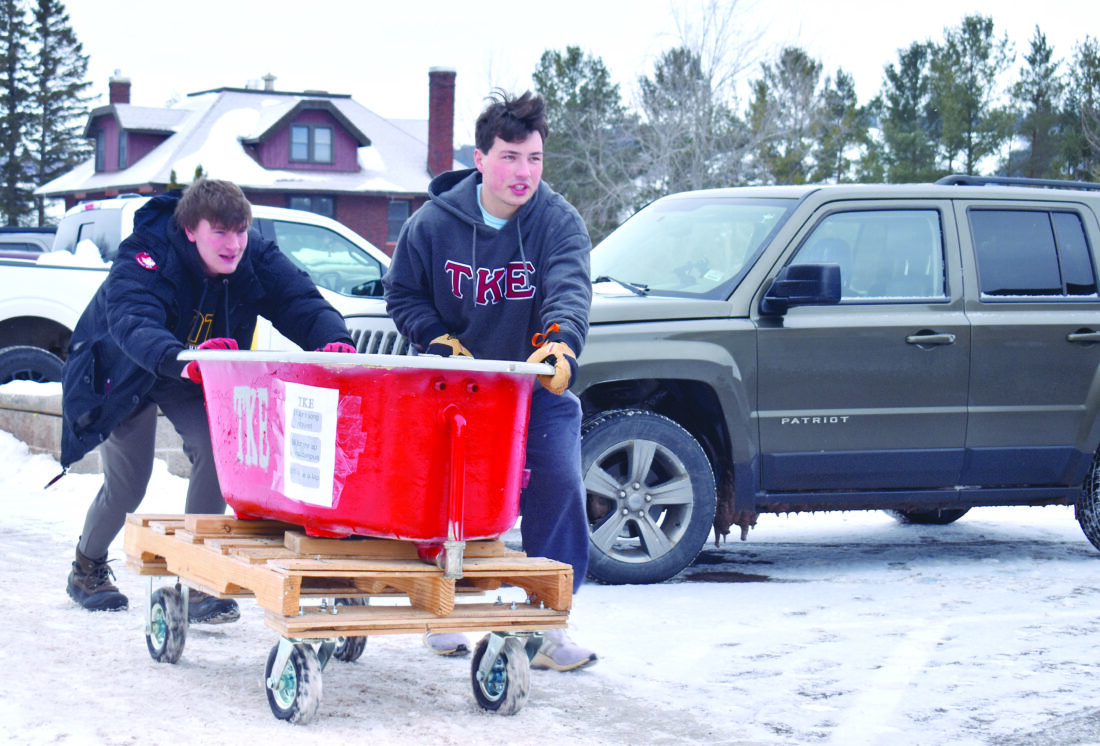HOUGHTON — The brothers of Tau Kappa Epsilon dedicated the entirety of their Wednesday to wheel a bathtub from the William J. Bernard Jr. Family Clock Tower on the west end of the Michigan Technological University campus, to Walker Arts and Humanities Center on the east end, then all the way back around.