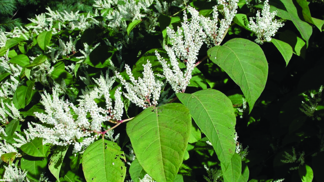 Photo courtesy of Leslie J. Mehrhoff/University of Connecticut Japanese knotweed grows aggressively in disturbed areas and overtakes native plants.