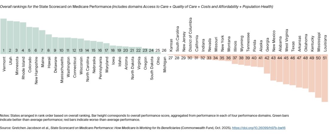 “Medicare is a lifeline for millions of Americans, and for the first time this scorecard shows how people’s experiences with the program vary widely depending on where they live,” wrote Gretchen Jacobson, the Commonwealth Fund’s Vice President for Medicare, in a press release accompanying the scorecard. “In some states, beneficiaries can see doctors quickly and afford their prescriptions; in others, they face higher costs, delays, or red tape. By learning from states where Medicare works best, policymakers and health leaders can strengthen the program for everyone.”