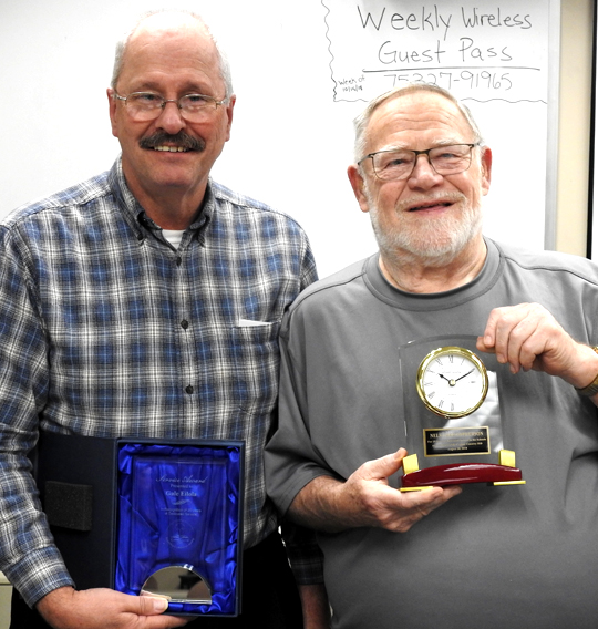 Nels Christopherson has served on the CCISD board for 25 years and Gail Eilola has served for 20 years. Stockero presented them with a commemorative clock and plaque respectively.