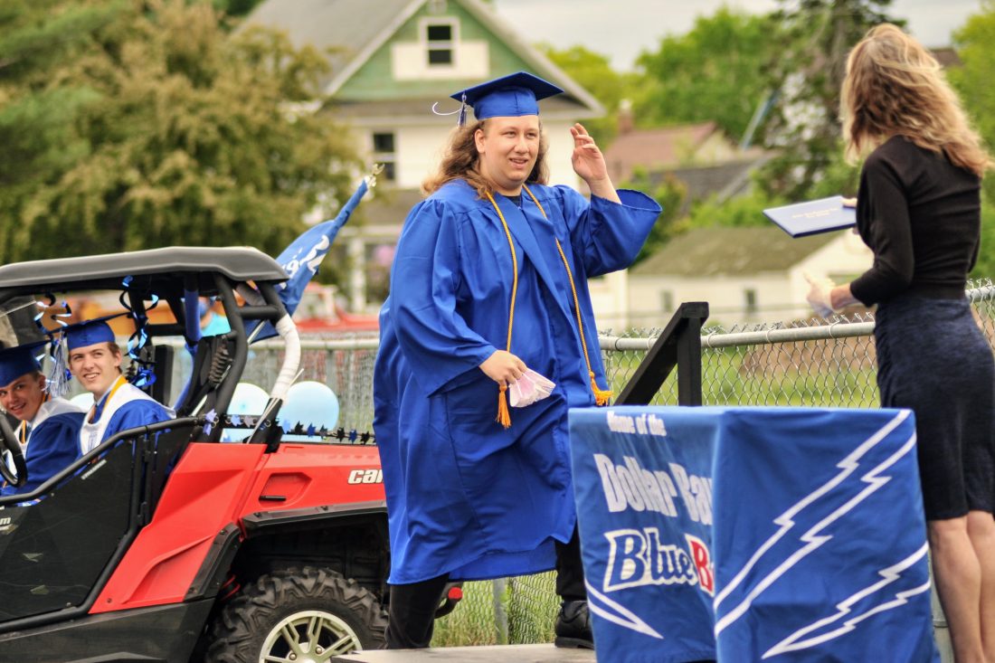 DOLLAR BAY — Dollar Bay-Tamarack City Area Schools held its unique 2020 Graduation Ceremony on Saturday, June 6, at 10 a.m. at the Dollar Bay Baseball Park. The honored seniors were seated along the fence of the ball field in golf carts and side-by-sides! Families were parked in vehicles facing the graduates. Friends and extended family were invited to park at Quincy’s Restaurant or on Main Street. The one-of-a-kind ceremony included speeches by Class Valedictorian Ashton Janke, Class Salutatorian David Storm, Class President Louise Carlson, Guidance Counselor Jesse Kentala, and Superintendent-Principal Christina Norland. Donna Engman, School Board President, conferred the diplomas. The ceremony was broadcast live by 93.5/The Mix, thanks to Dirk Hembroff, and the ceremony was recorded by Kristin Ojaniemi of Oja Media. Local photographers Michelle Anderson and Kassy Kallio took pictures. Following the ceremony, a Dollar Bay fire truck led the golf cart and side-by-side-riding graduates in a parade, with a Tamarack City truck pulling up the rear, following a route along Main Street and Fir, to the school building, which is currently in the midst of a major construction project.