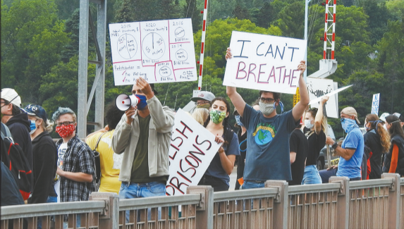 HOUGHTON — Holding signs like “Stop Killing Black People” and “Silence is Violence,” about 40 people marched across the Portage Lake Lift Bridge Friday to protest racial injustice and commemorate Juneteenth.