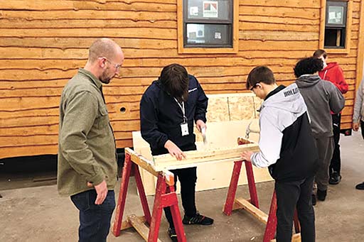 Photo courtesy of Copper Country ISD Career & Technical Education CTE Construction Technology instructor, Mike Randell, gives tips on hammering a nail to a group of 10th-grade students who took part in the week-long tour of CTE programs. CTE students in Mr. Randell’s class learn all aspects of the construction field, from bidding a job to designing a structure to framing, wiring, plumbing, HVAC in a whole house, and the related skills and abilities.