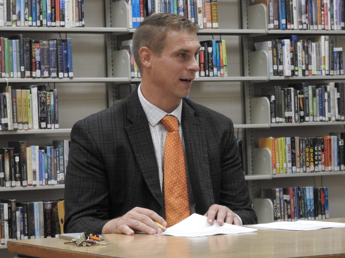 Garrett Neese/Daily Mining Gazette Anders Hill, superintendent of Houghton-Portage Township Schools, reports on the district’s Michigan Student Test of Educational Progress (M-STEP) results.