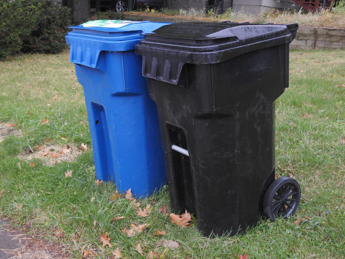 Garrett Neese/Daily Mining Gazette Trash and recycling containers are seen in a residential yard in Houghton. The city council heard discussion of a new draft contract with Waste Management Wednesday.